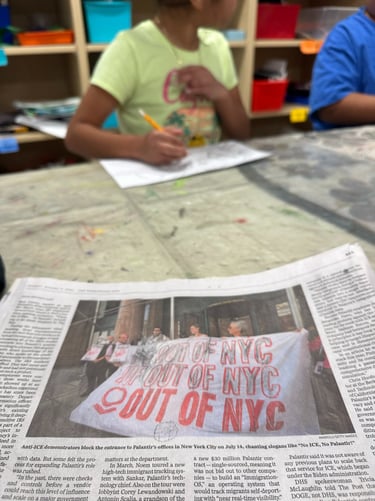 What struck me the most wasn’t just that they knew the word ICE, but how they said it, in a way that didn’t sound like a question of curiosity but rather a question of pure survival, such as, Do you know the monster too? After class, when the other kids had left and I was helping them wash the paint off their hands, I asked gently if they felt safe here. They didn’t hesitate to start talking about ICE and Trump, highlighting the fear that had become a part of the vocabulary of politics they never asked to learn.